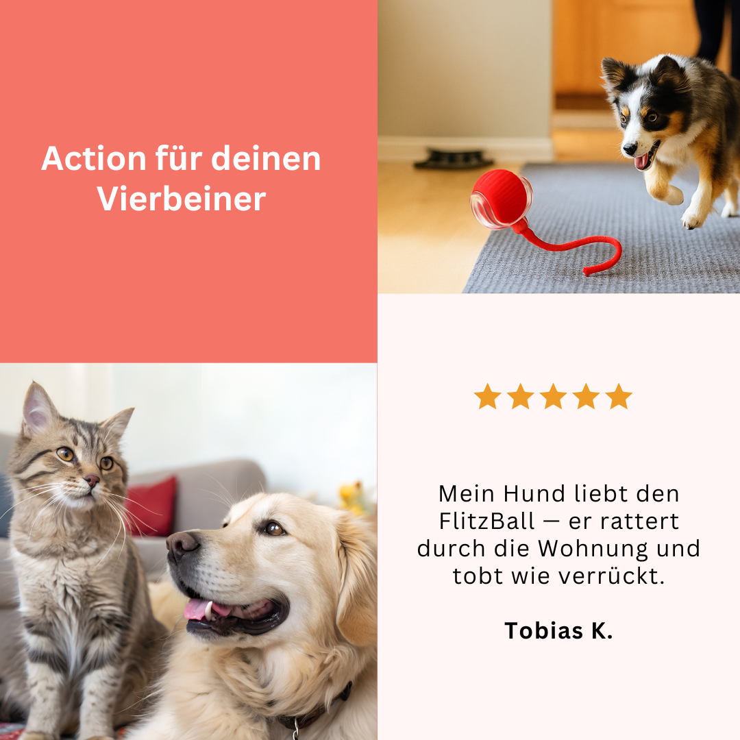 Der Flitzball bewegt sich automatisch in unvorhersehbaren Mustern und animiert deinen Vierbeiner dazu, aktiv zu spielen.